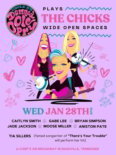 Uncle B's Damned Ole Opry is Bryan Simpson's irreverent trippy-trad tent revival of a musical experience currently on residence in the Neon Steeple at Chief's on Broadway in Nashville, Tennessee.